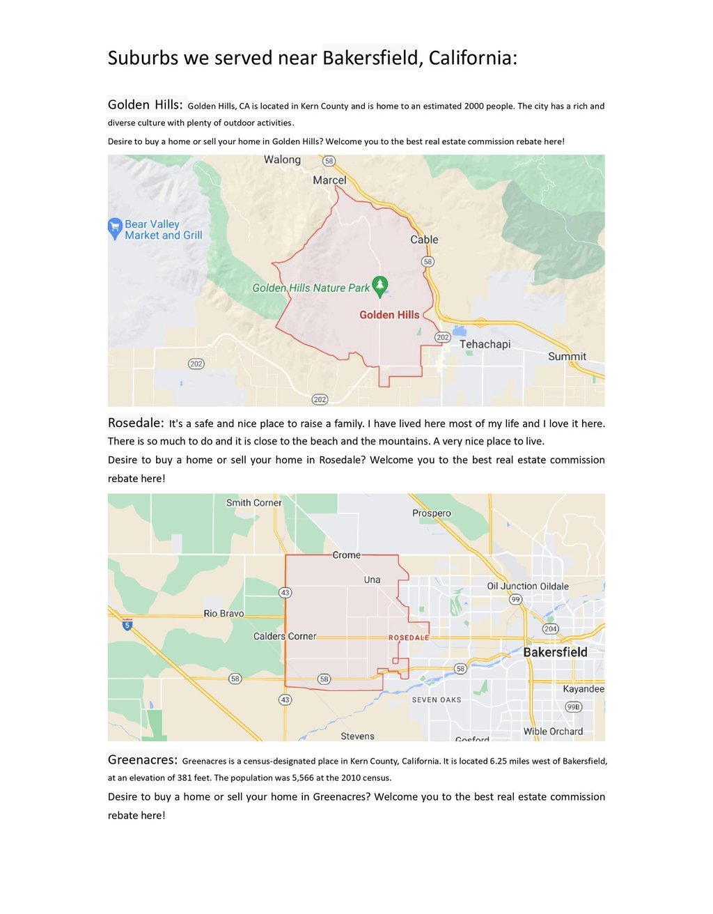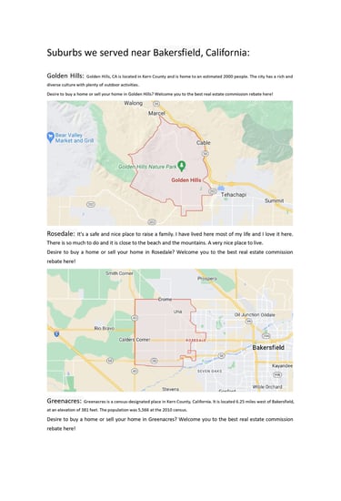 Suburbs we served near Bakersfield, California: